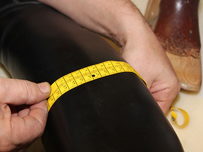 zu 3 cm möglich. Bei dieser Methode wird der Reitstiefel in einem speziellen Lederdehner eingetaucht. Um die weite anzupassen wird der Reitstiefel im nassen Zustand aufgeblockt und ca. 2 bis 3 Stunden in einem Ofen bei 40 Grad getrocknet. Beim trocknen wird die Weite erreicht und der Stiefel gestreckt.